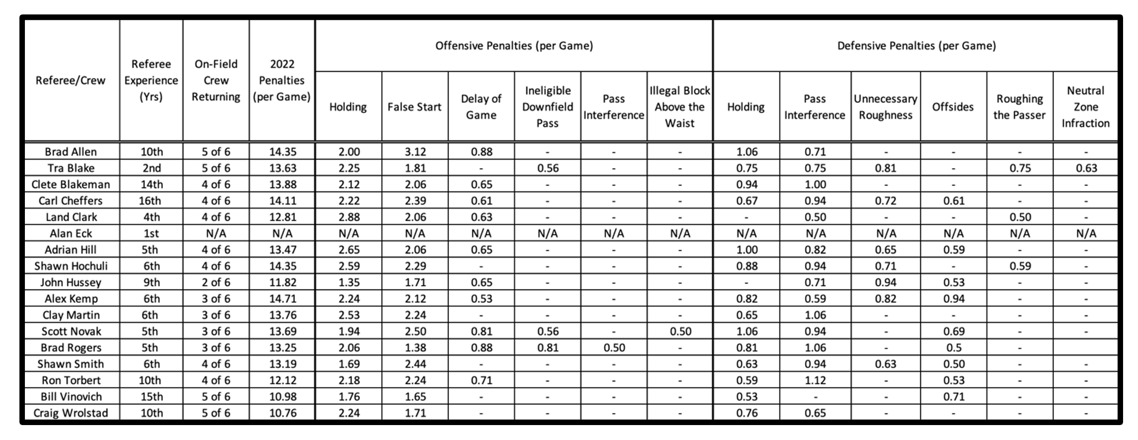 Take a look at the Referees/Crews for the upcoming season and their “performance” in 2022.
